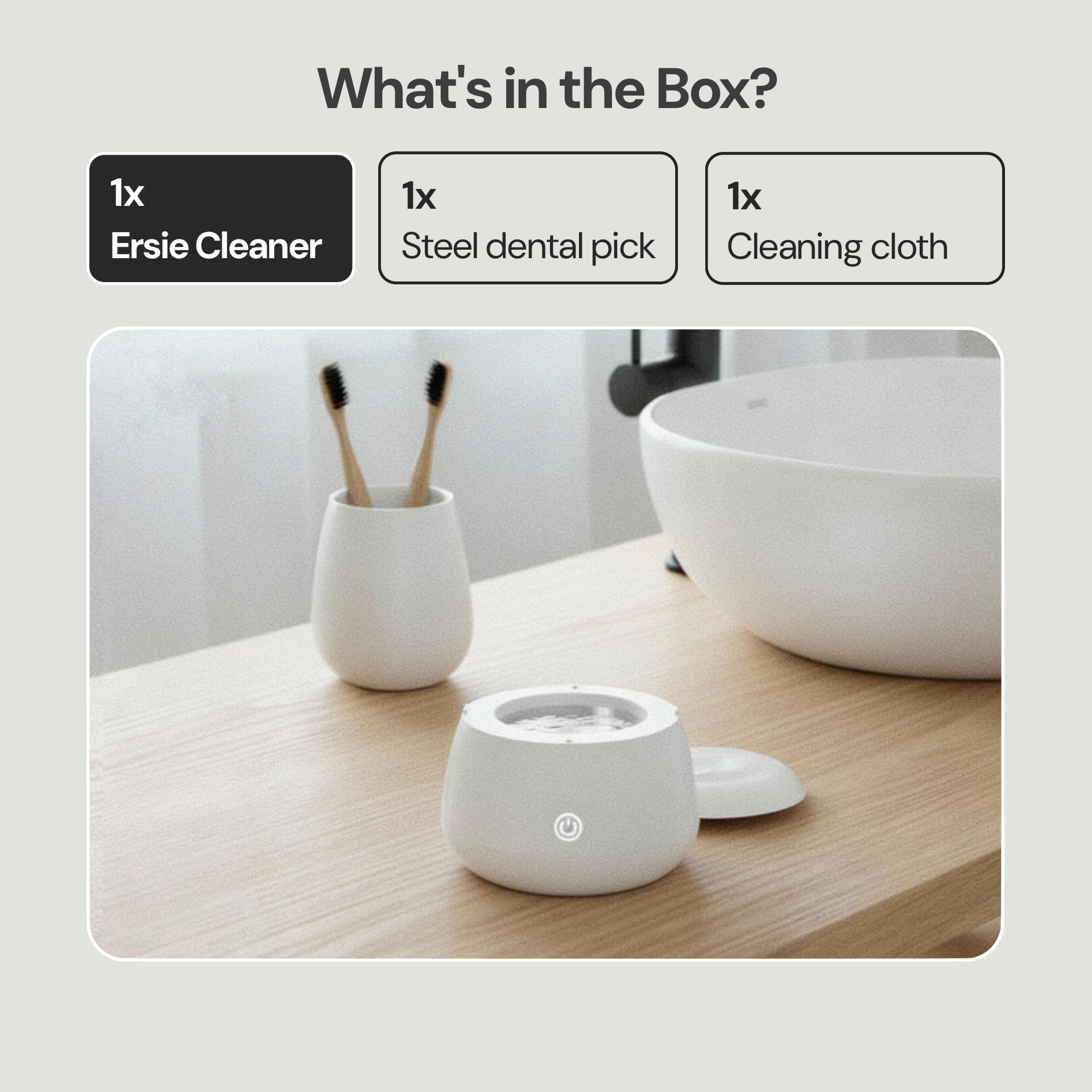 Ersie uses the ultrasonic technology to clean plaque, debris and bacteria, thoughtfully adapted for safe, everyday care at home.